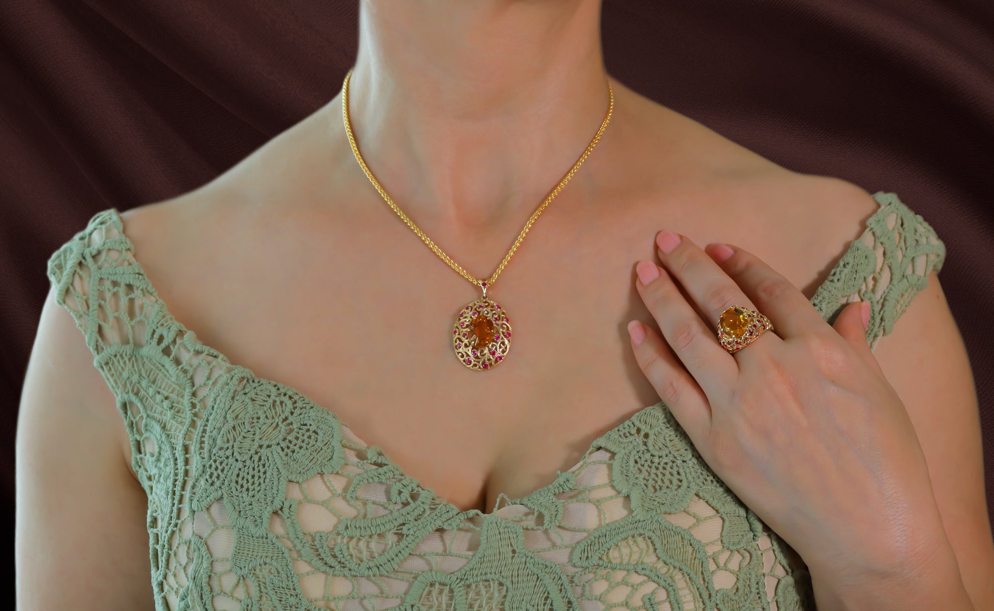Opera is an ode to vintage drama and artistic brilliance. Inspired by the warmth of citrines, the passion of rubies, and the grandeur of classic opera houses, each piece is sculpted in solid 18K gold with hand-engraved ornamental details that capture the spirit of the stage.